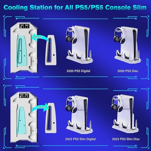 Take your PlayStation 5 setup to the next level with this multifunctional cooling and charging station, designed for both PS5 and PS5 Slim (Disc & Digital Editions). Engineered for performance, convenience, and organization, it's the perfect companion for any serious gamer.