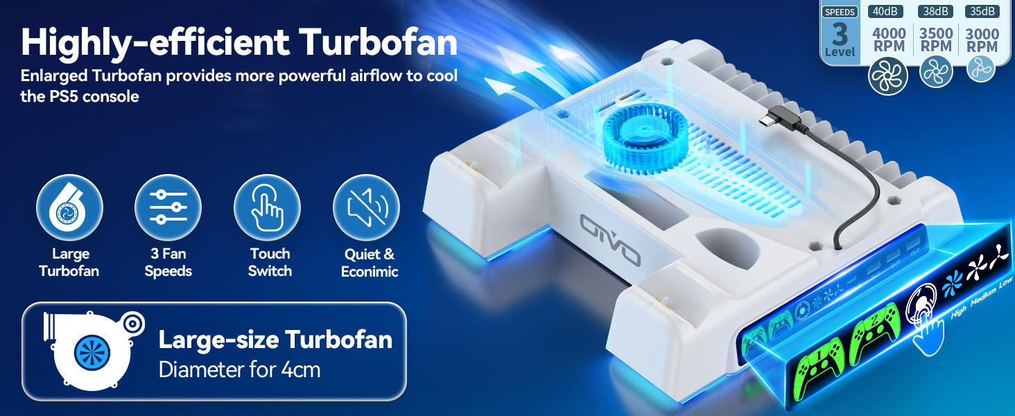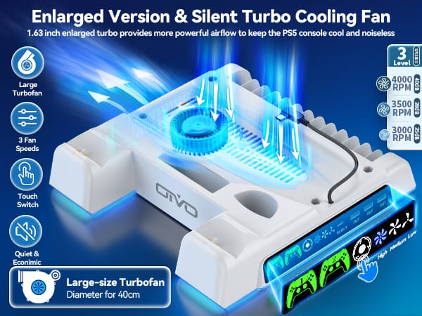 Keep your console cool and running at peak performance with a 3-speed turbo fan system. Choose from low, medium, or high to efficiently push heat away and prevent overheating during intense gaming sessions.