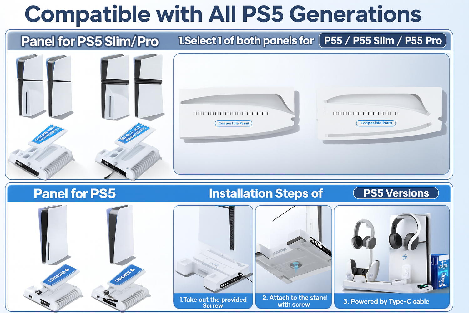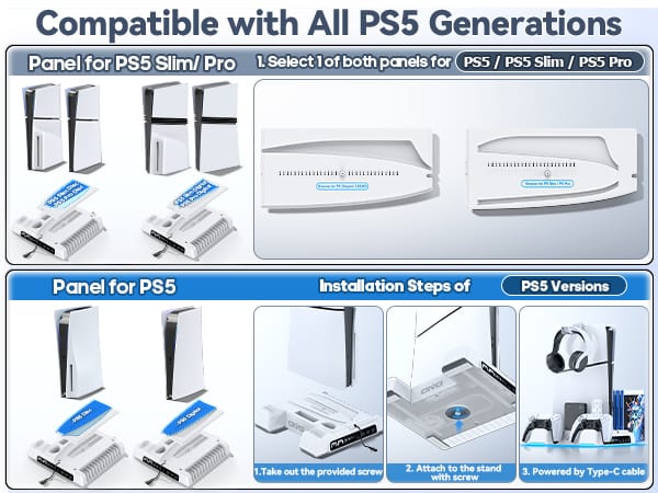 Designed to fit all PS5 models — Slim and Standard, Disc or Digital — with easy-to-follow installation instructions and no tools required.
